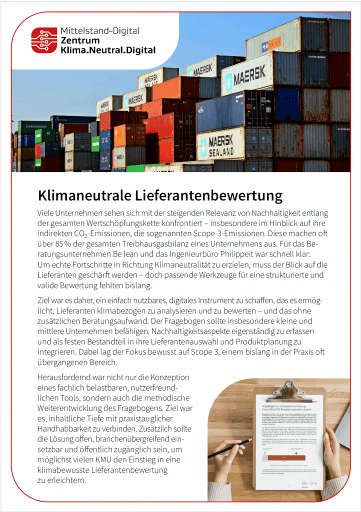 Zur Bewertung der Klimaschutzbestrebungen Ihrer Lieferanten und zur eigenen Klimaschutz-Positionierung